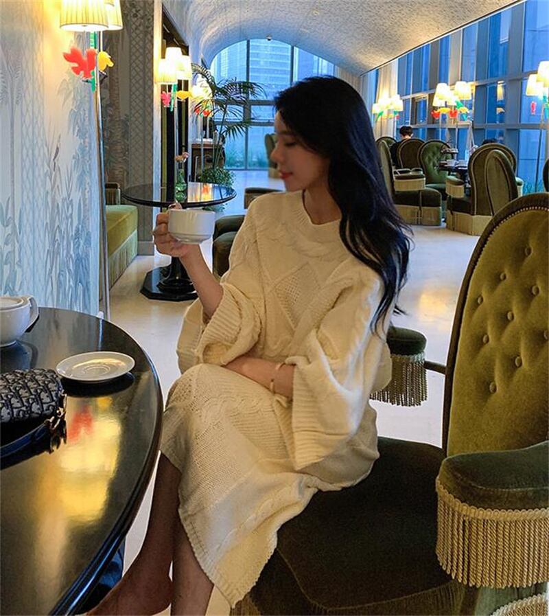 2022冬INS★ファッション レイジー風 ゆったり ドルマンスリーブ ニットウェア タイトスカート