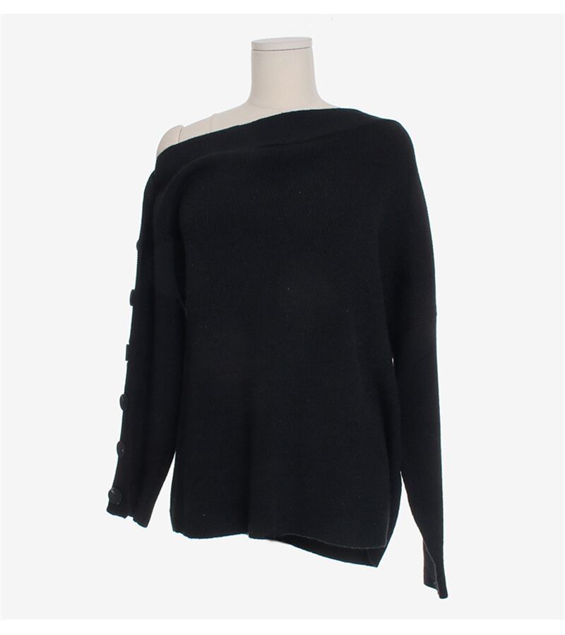 INS 秋新作 カジュアル 韓国系 ボートネック ボタン 長袖Tシャツ ニットトップス