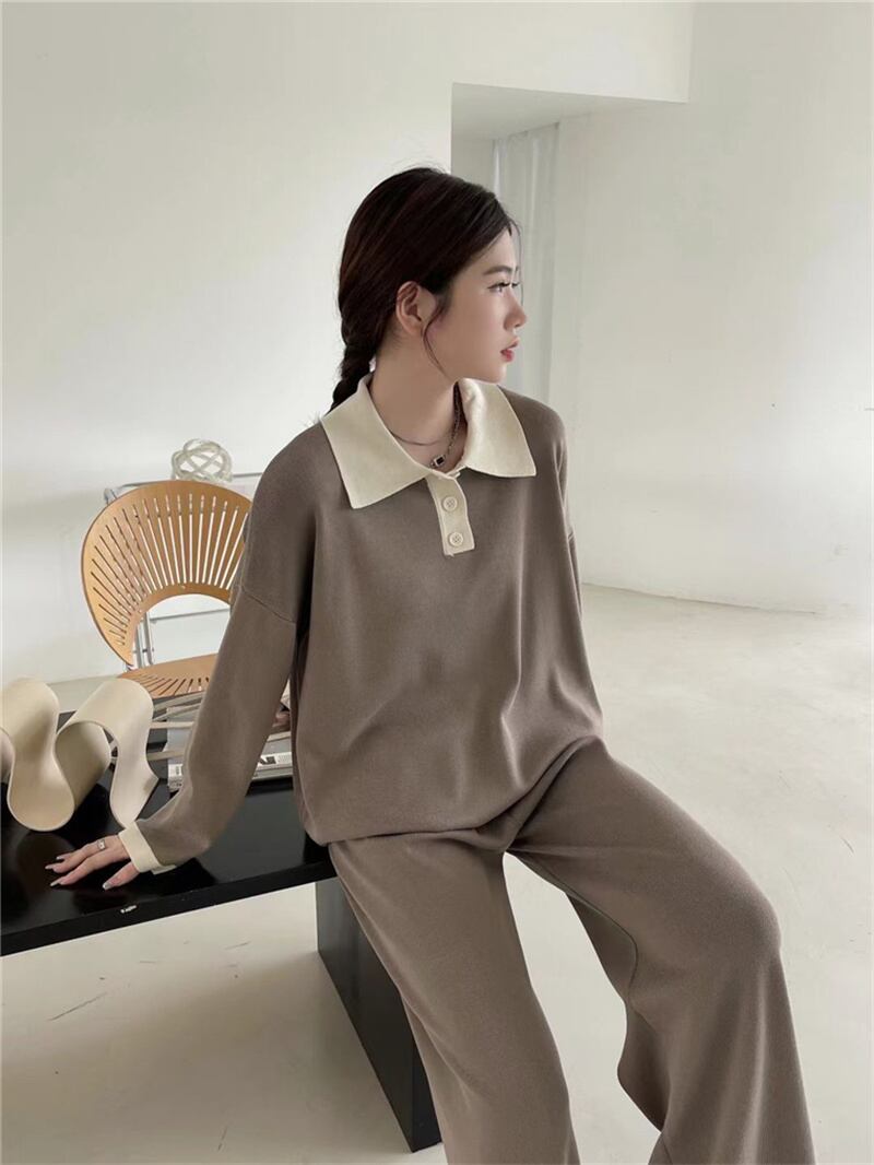INS 秋冬新作 ins超人気 韓国系 カジュアル シンプル 長袖 無地 ポロシャツ パンツ