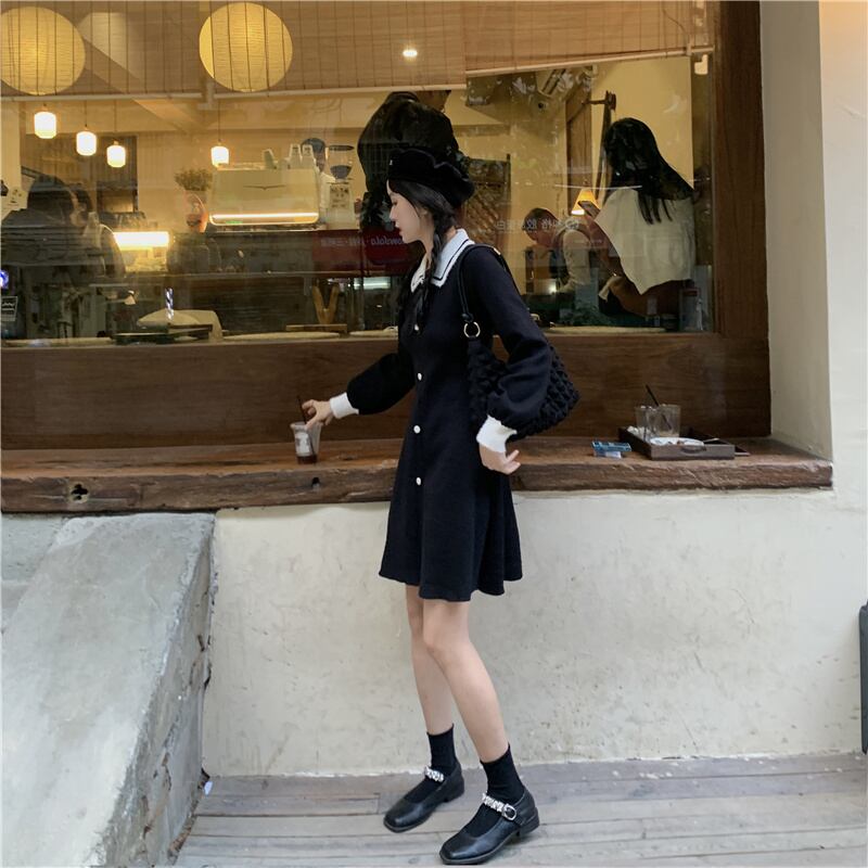 INS 秋冬新作 シンプル デザイン若く見え 折り襟 ニット ワンピース