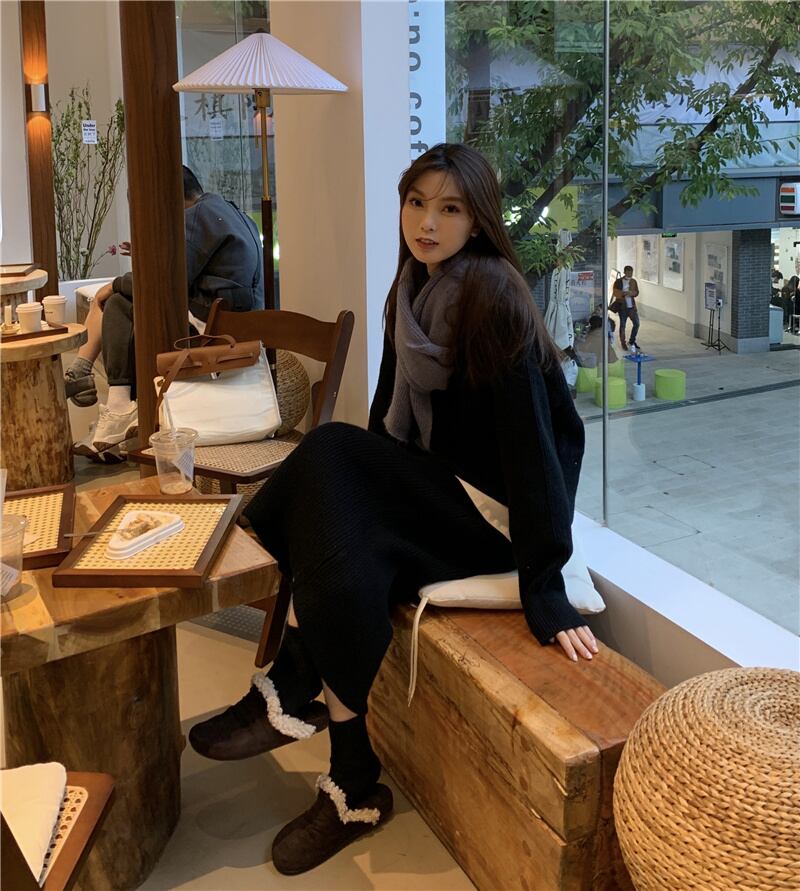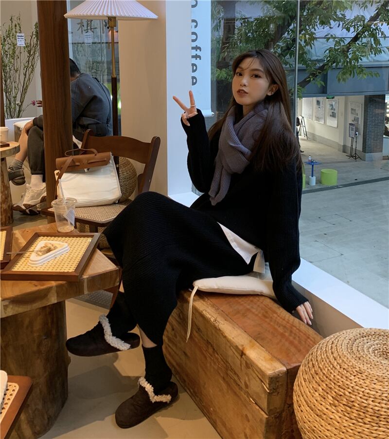 INS 秋冬新作 シンプル デザイン性抜群 無地 セーター セミロングスカート