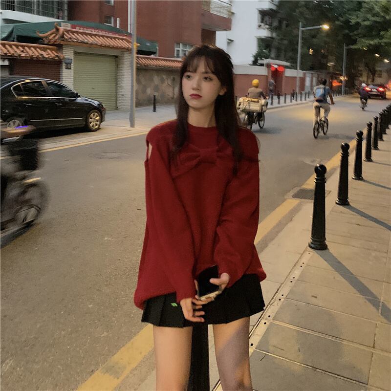 2022冬INS★ファッション超気質 ゆったり オフショルダー ニットウェア セーター