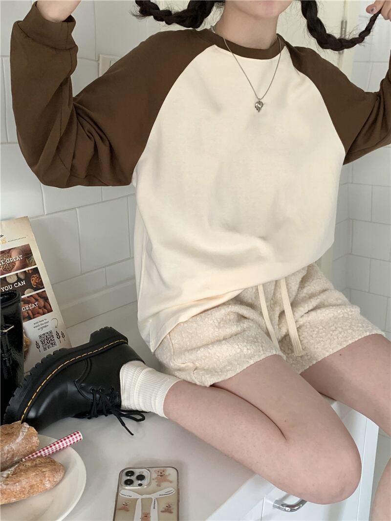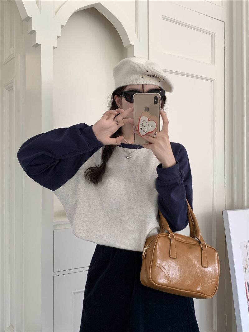 INS 秋冬新作 ins超人気 韓国系 デザイン性抜群 配色 切り替え トレーナー