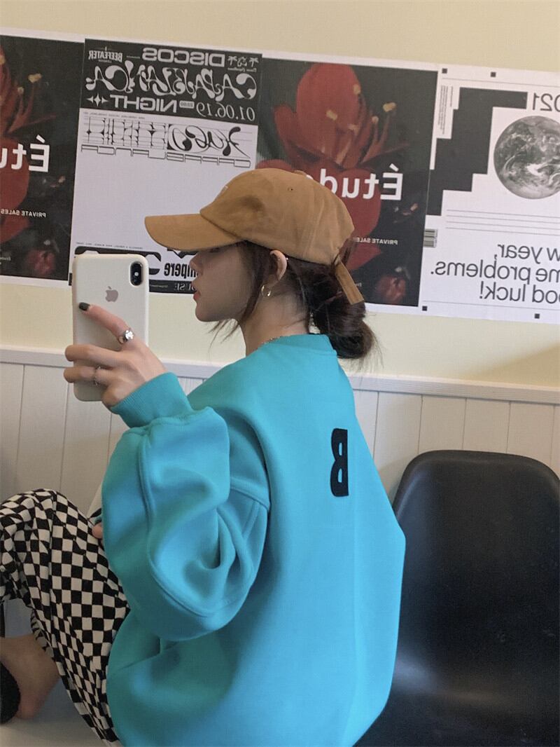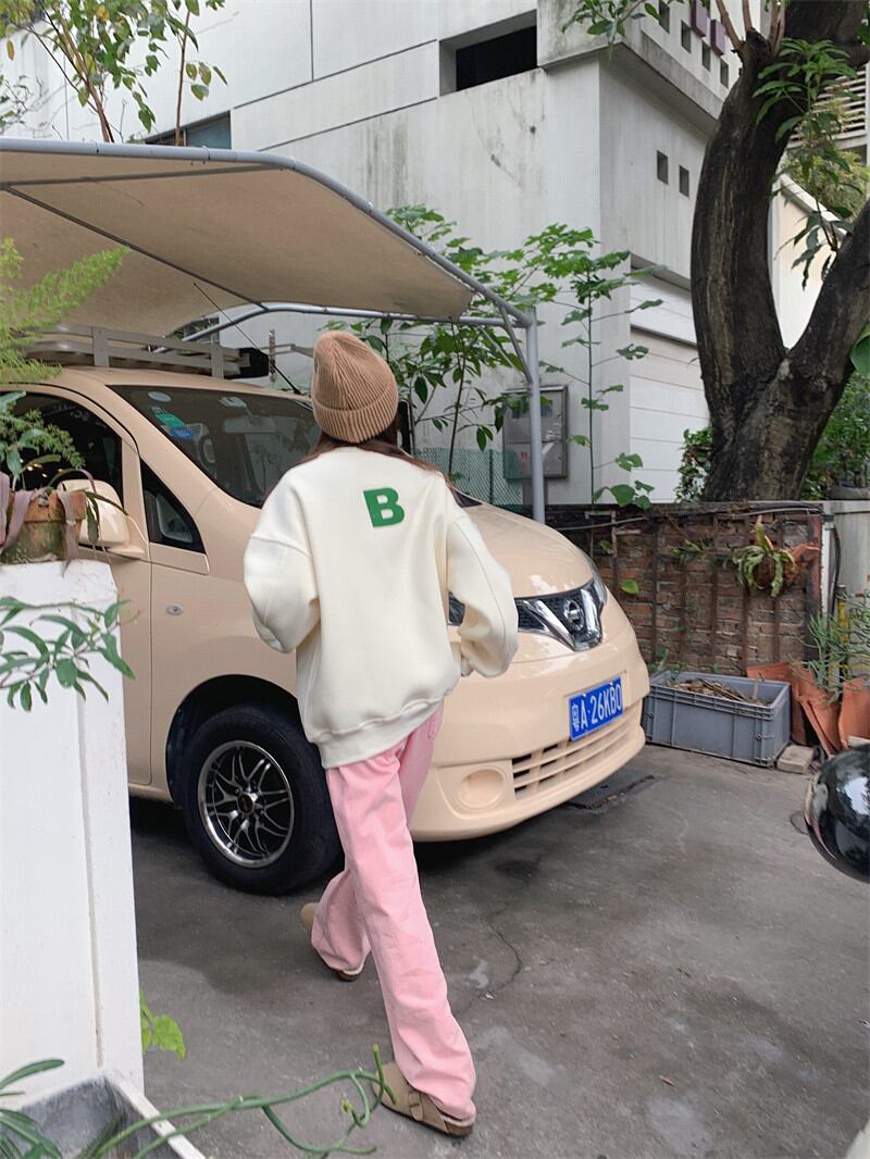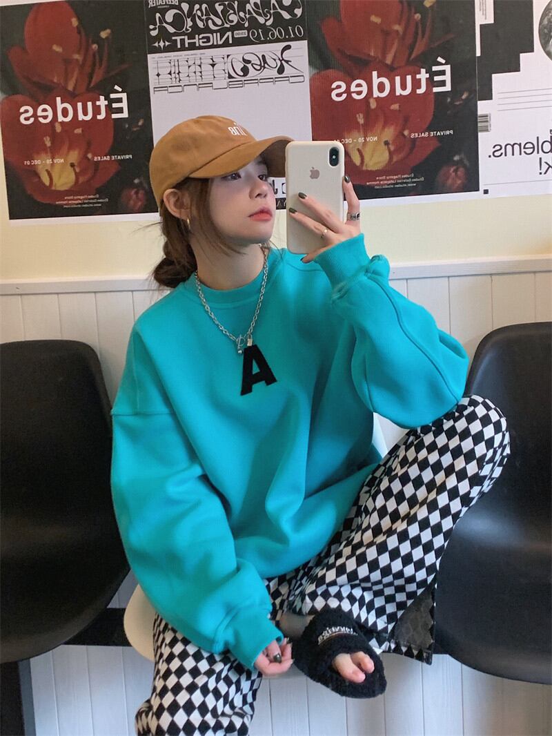 INS 秋新作 ゆったり 長袖 プリント アルファベット 裏起毛 プルオーバー デコレーション トレーナー