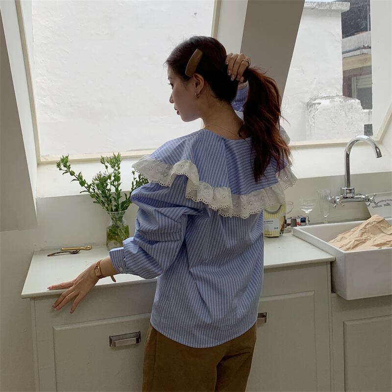 INS 秋新作 ファッション レトロ 気質 シンプル ストライプ柄 シングルブレスト シャツ/ブラウス