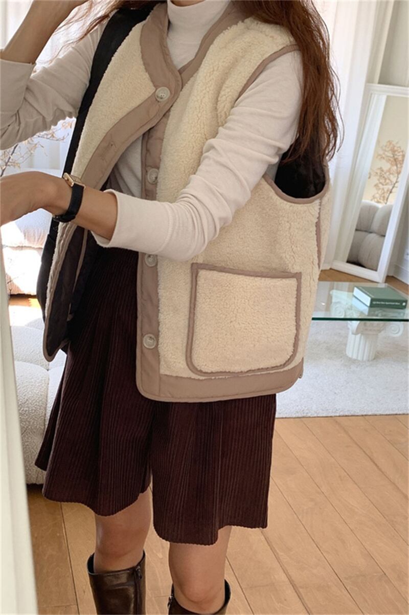 INS 秋新作 レトロ 韓国系 シングルブレスト 配色 両面着用可 ラムウールベスト