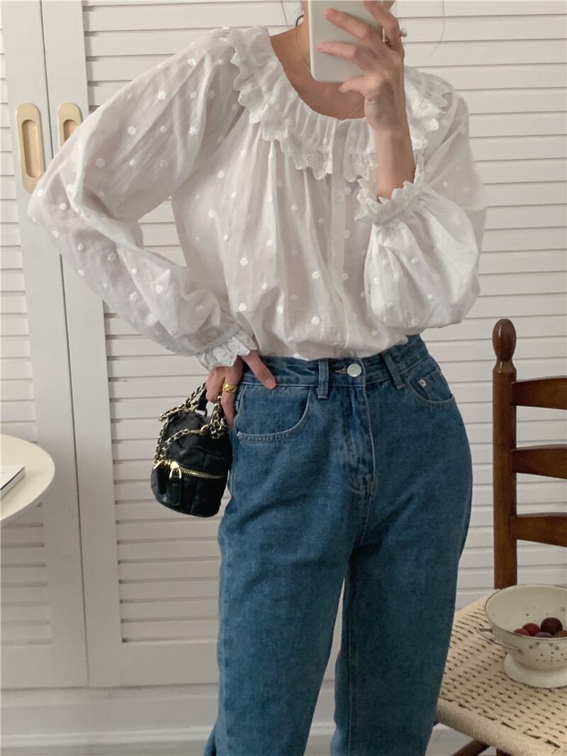 INS 秋新作 レトロ 長袖 シングルブレスト 刺繍 シャツ/ブラウス