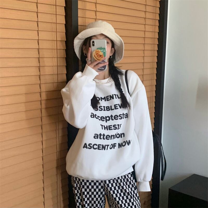 INS 秋新作 超人気 韓国系 シンプル アルファベット ラウンドネック 長袖 Tシャツ