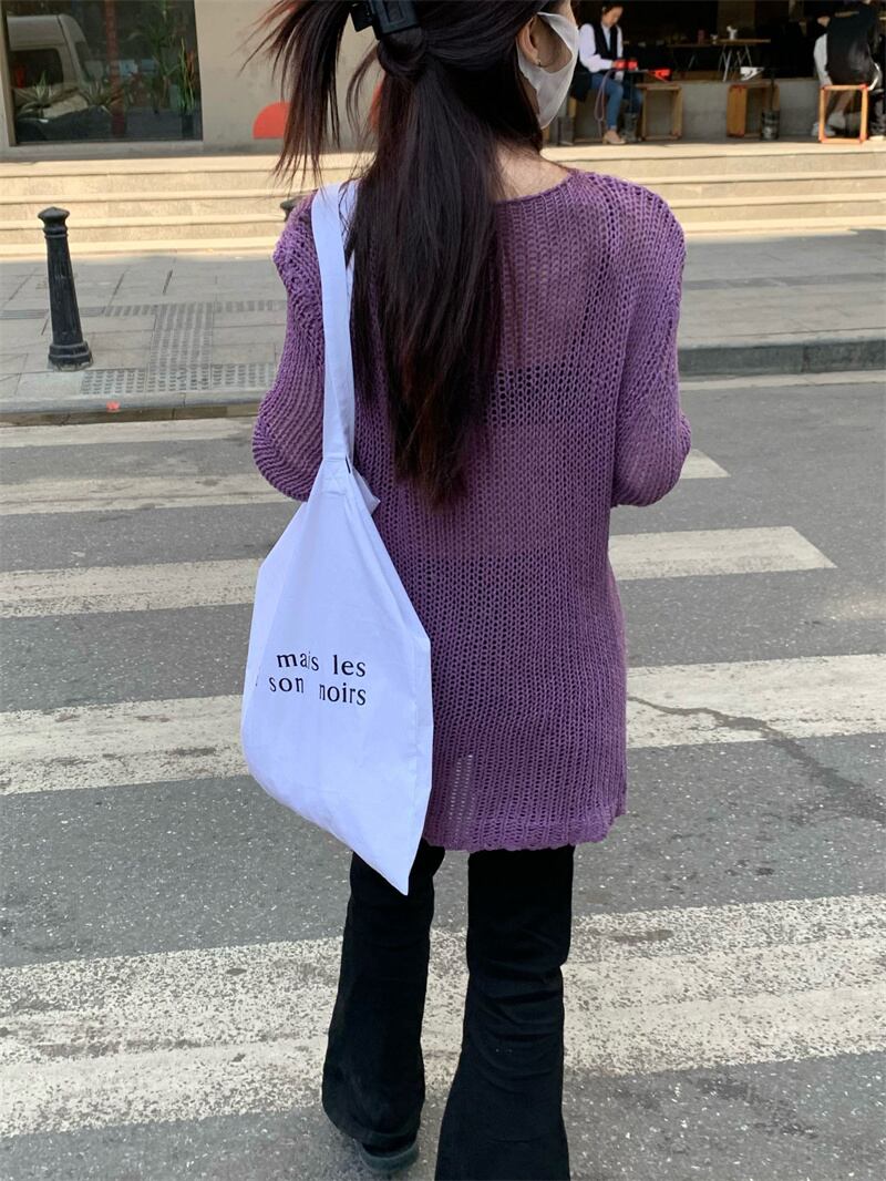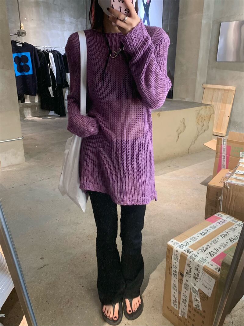 INS 秋新作 超人気 韓国系 シンプル 透かし彫り ラウンドネック 長袖 セーター