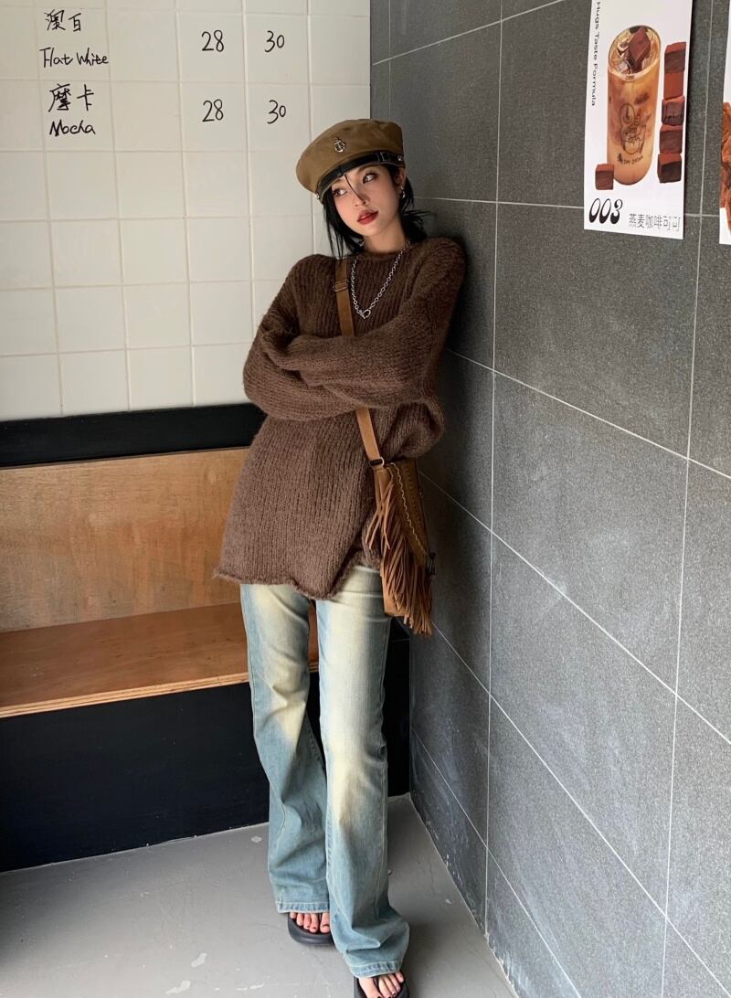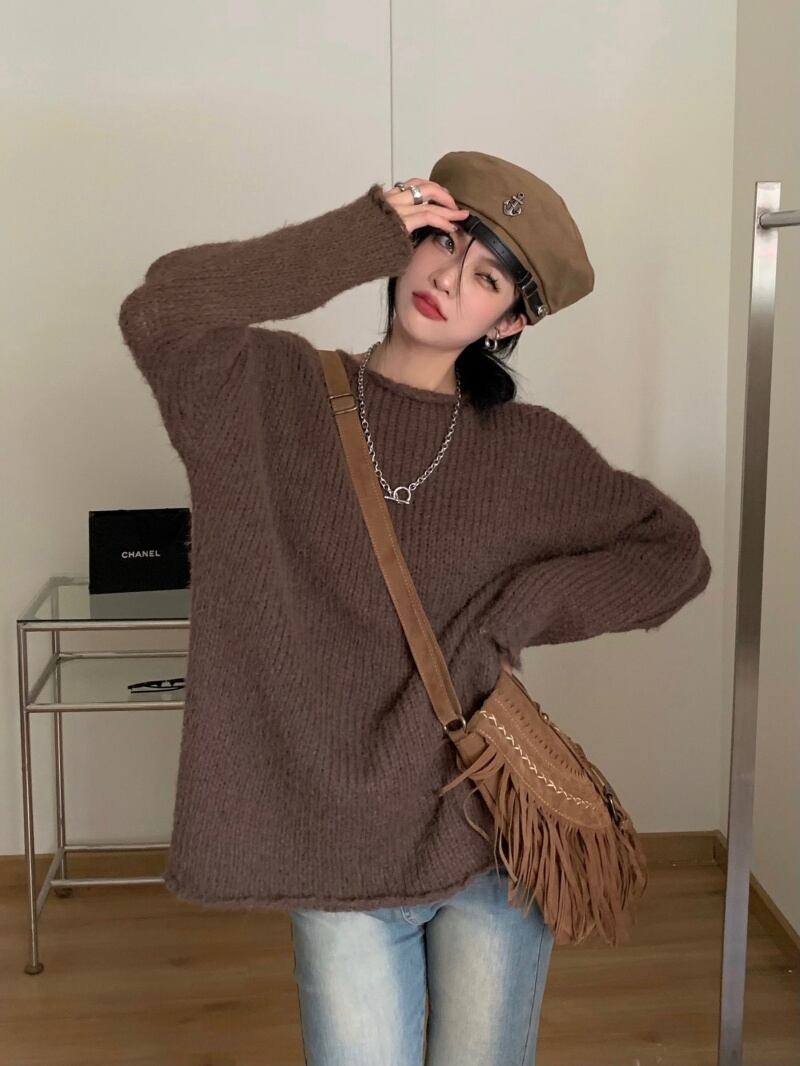 2022冬INS★ファッション超気質 韓国風 レイジー風 無地 センター