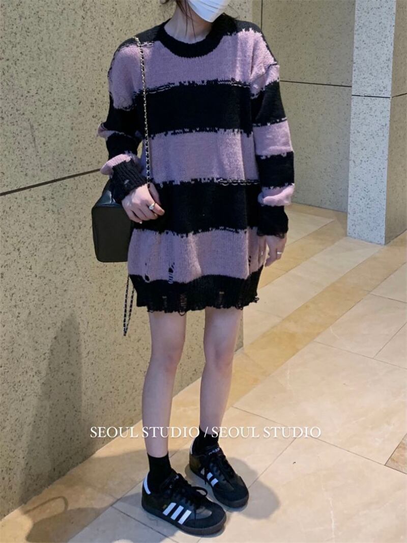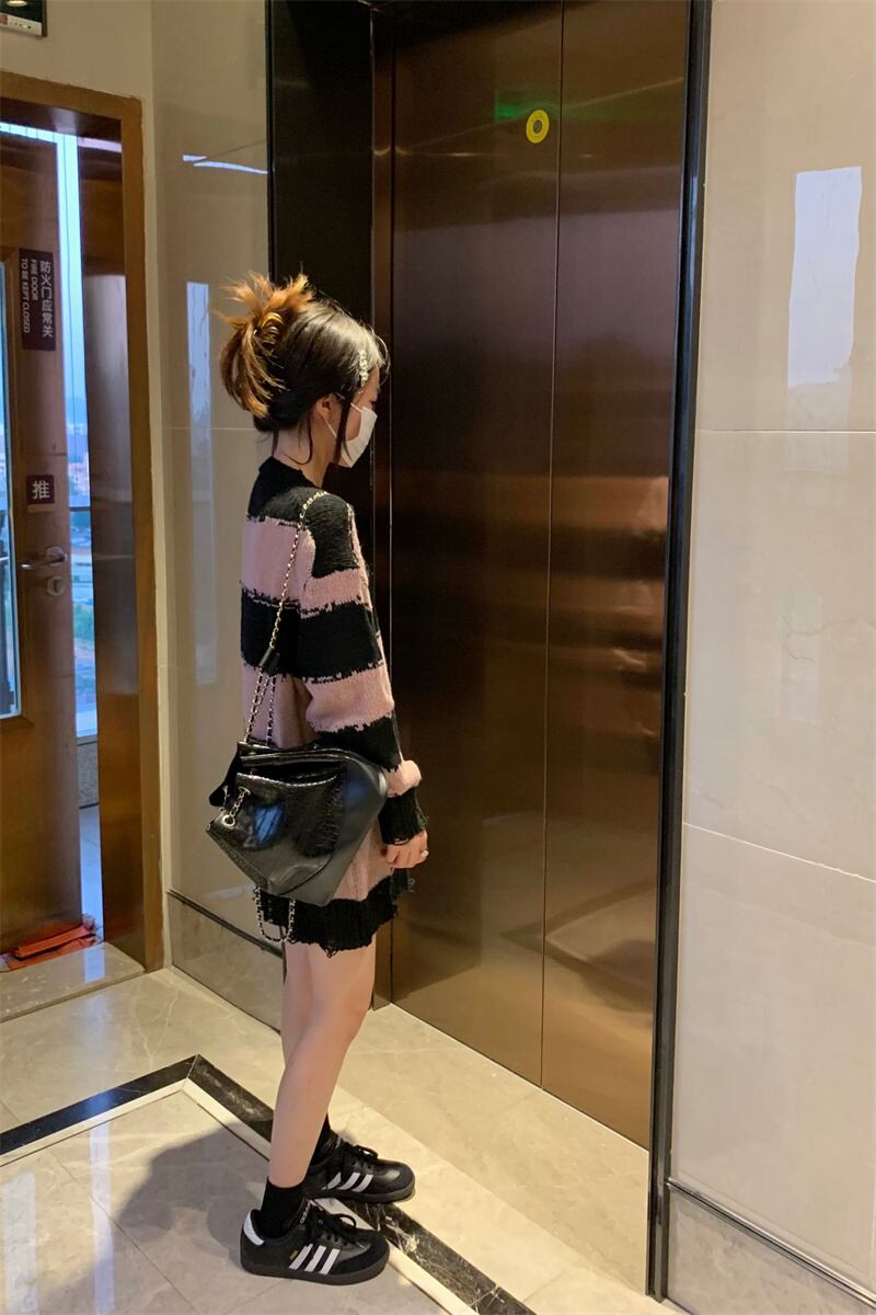 2022冬INS★ファッション超気質 韓国風 ストライプ 柄 センター