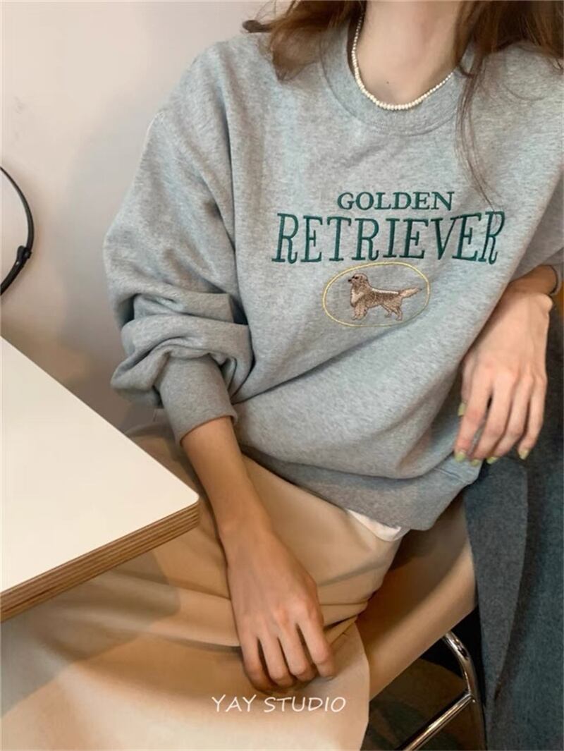 INS 秋新作 超人気 シンプル 韓国系 優しい印象 刺繡 トップス
