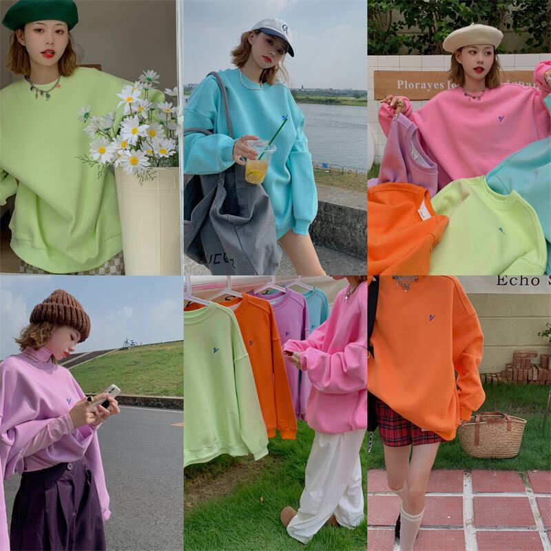 INS 秋新作 超人気 韓国系 シンプル ラウンドネック 長袖 Tシャツ