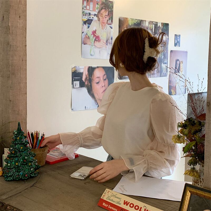 INS 秋新作 ファッション レトロ 気質 オーガンザ ランタンスリーブ シャツ/ブラウス
