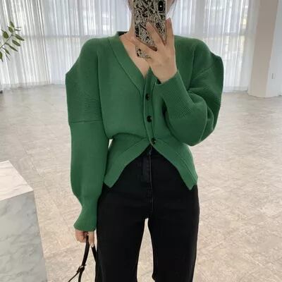 INS 秋新作 超人気 合わせやすい レーシング ニットランタンスリーブ カーディガン