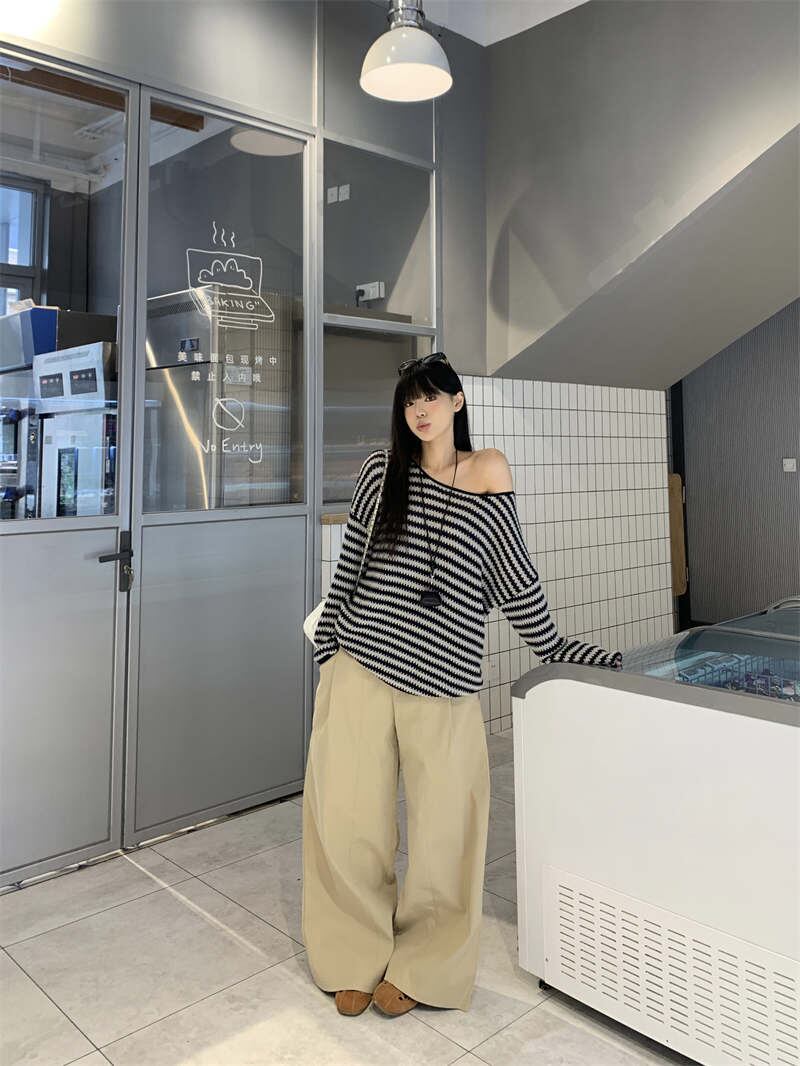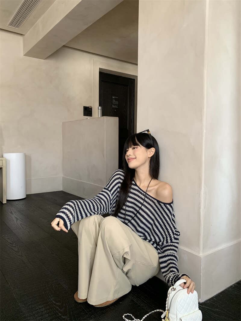 2025年INS 秋新作 気質 chic 韓国ファッション 長袖 ストライプ ニット セーター