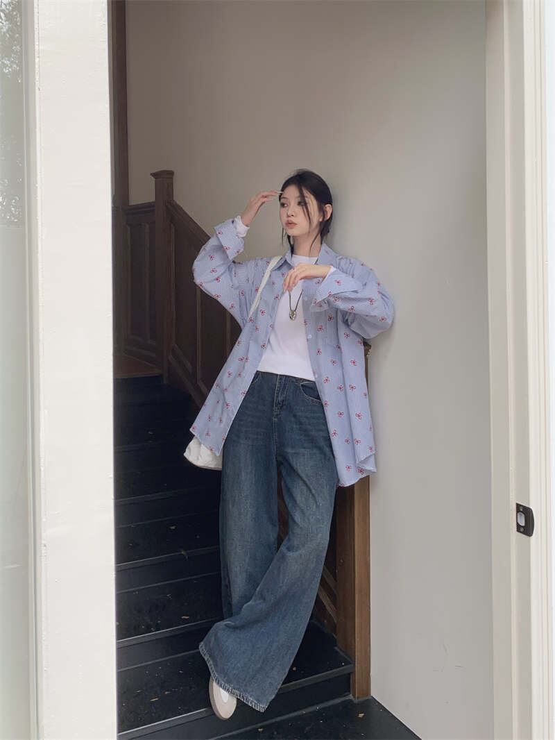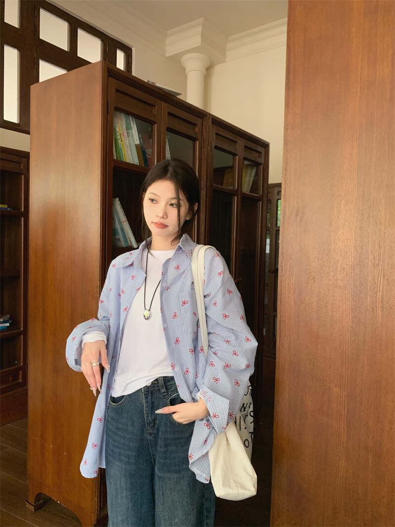 2025年INS 秋新作 気質 chic 韓国ファッション 長袖 ストライプ ブラウス/シャツ