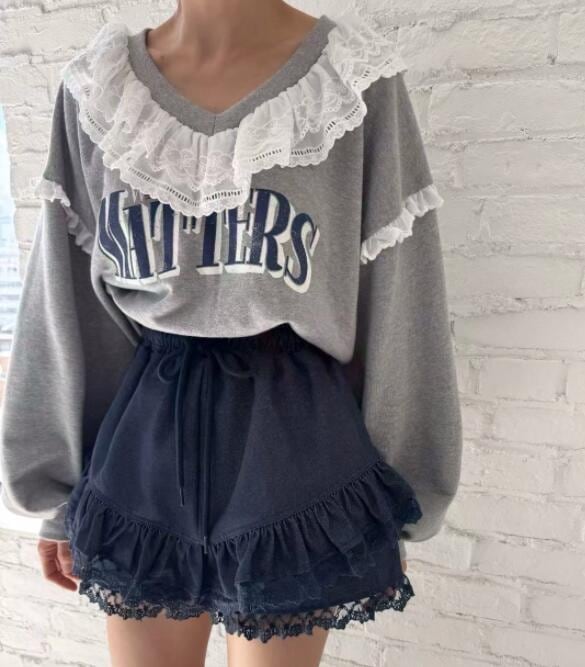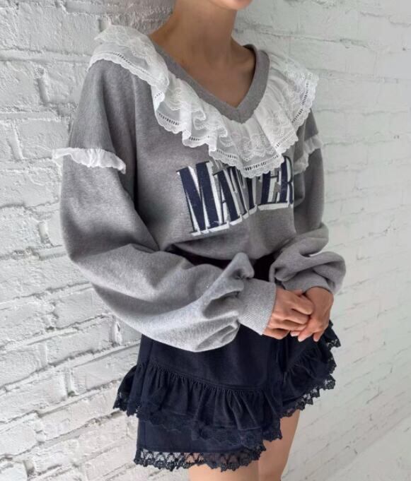 トップス トレーナー スウェット レース 切替 長袖 ブラウス