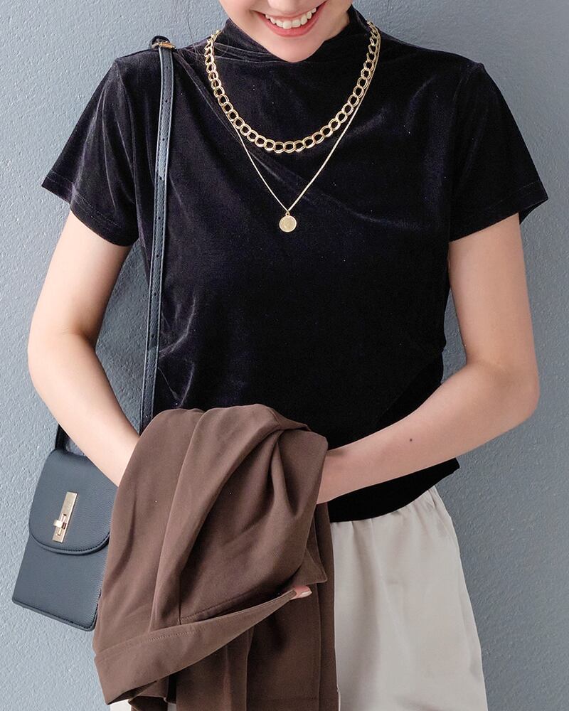 【2025新作商品♪】ショート丈ギャザーベロアトップス