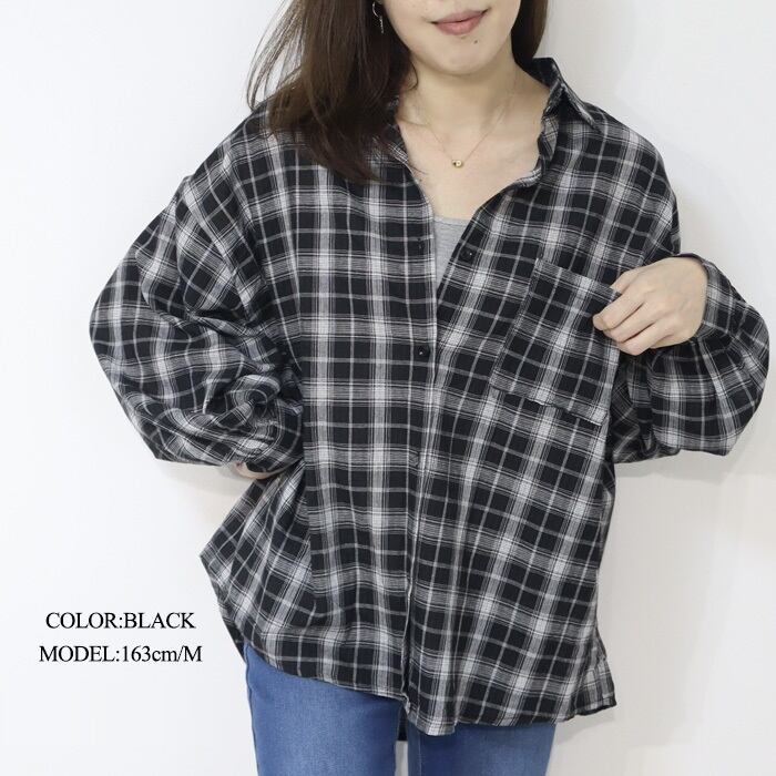 秋口にピタリ素材のチェックオーバーサイズシャツ