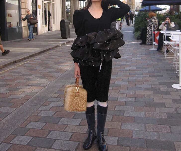 2025年INS 秋新作 気質 chic 韓国ファッション デザイン感 バレエ風 コーデュロイ 長袖 T シャツ