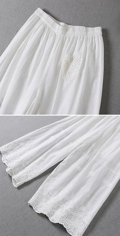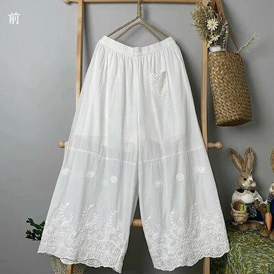 【早秋冬新作超.激.安】刺繍ワイドパンツ ペチコート ペチパンツ レディース カットワーク 体型カバー 重ね着 綿100% ナチュラル カジュアル ゆったり 裾レース フリル ガウチョパンツ ウエスト