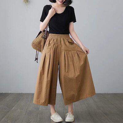 【早秋冬新作超.激.安】ワイドパンツ パンツ レディース ボトムス ロングパンツ ガウチョ ズボン 無地 ガウチョパンツ 大きいサイズ フレアパンツ ゆったり 体型カバー 綿 コットン カジュアル ビ