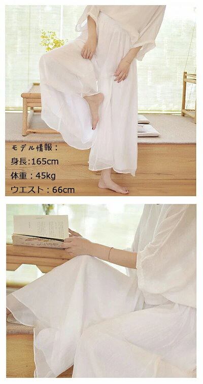 【早秋冬新作超.激.安】スカーチョ ワイドフレアパンツ レディース ガウチョパンツ エアーパンツ 綿混紡 リネンワイドパンツ ウエストゴ ム無地 涼しい ゆったり 少し透け感 リゾート海 痩せ 柔らか