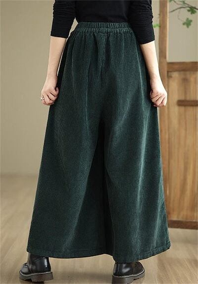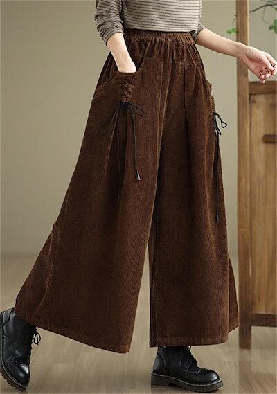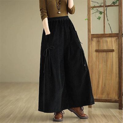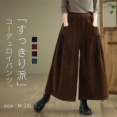 2025秋冬新作ガウチョパンツ レディース パンツ ワイドパンツ 秋冬 ボトムス ズボン 体型カバー 大きいサイズ レトロ コーデュロイ リボン付き ゆったり 落ち感 ウエストゴム ポケット付き イー