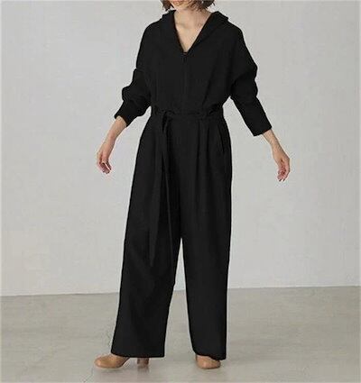 2025秋冬新作オールインワン レディース オーバーオール 長袖 長ズボン 春 秋 無地 ゆったり 体型カバー ロング丈 スポーツウェア カジュアル シンプル つなぎ ワイドパンツ 楽ちん ファスナ