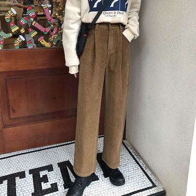 即納ありコーデュロイパンツ レディース ボトムス ウエストタック パンツ 冬物 ズボン ナチュラル ストレート ゆったり ロングパンツ あったか 長パンツ