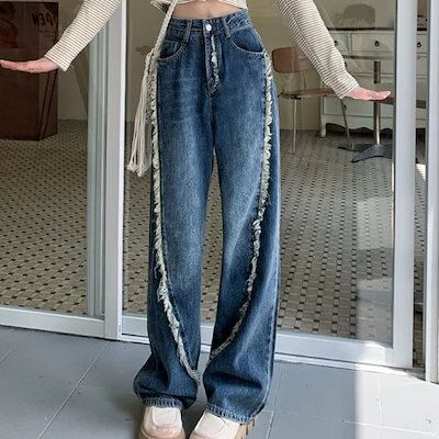 即納ありデニム デニムパンツ ジーパン ジーンズ カジュアル ゆったり レディース リラックス かっこいい かわいい 大人可愛い 韓国ファッション ルーズ