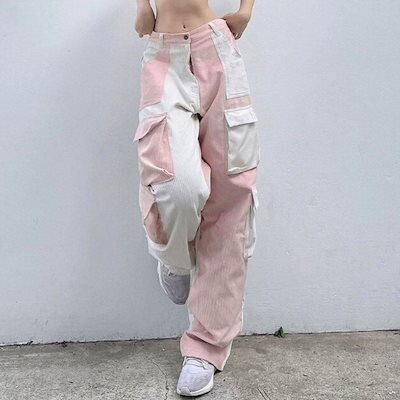 即納ありカーゴパンツ レディース アシメカラー ワイドパンツ ロングパンツ コーデュロイ ワイド パンツ ゆったり ストレート 韓国ファッション 個性的