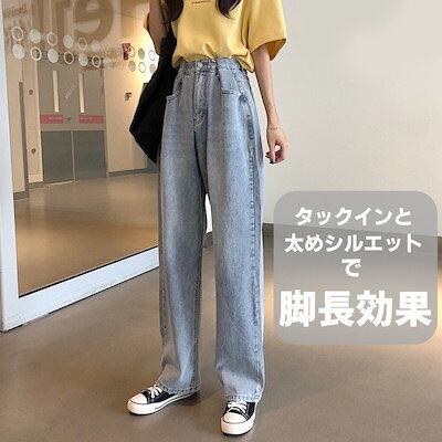 即納ありハイウエスト ジーンズ デニム ワイドパンツ レディース ゆったり 韓国ファッション Gパン ジーパン ズボン フック カジュアル