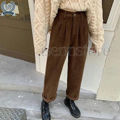 パンツ コーデュロイ ゆったり ストレート ワイドパンツ レディース ボトム シンプル ハイウエスト 大きいサイズ 無地 ガウチョパンツ レトロ買い占め中