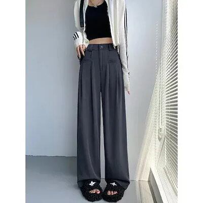 [現品]ワイドパンツ 25入荷ゆったり細身ストレートパンツレディースパンツドレープカジュアルスーツワイドパンツ