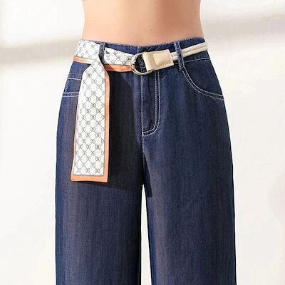 [現品]テンセル ジーンズ レディース ワイドレッグ 新作 薄手 ゆったり 薄手 ハイウエスト アイスシルク ストレートレッグ パンツ