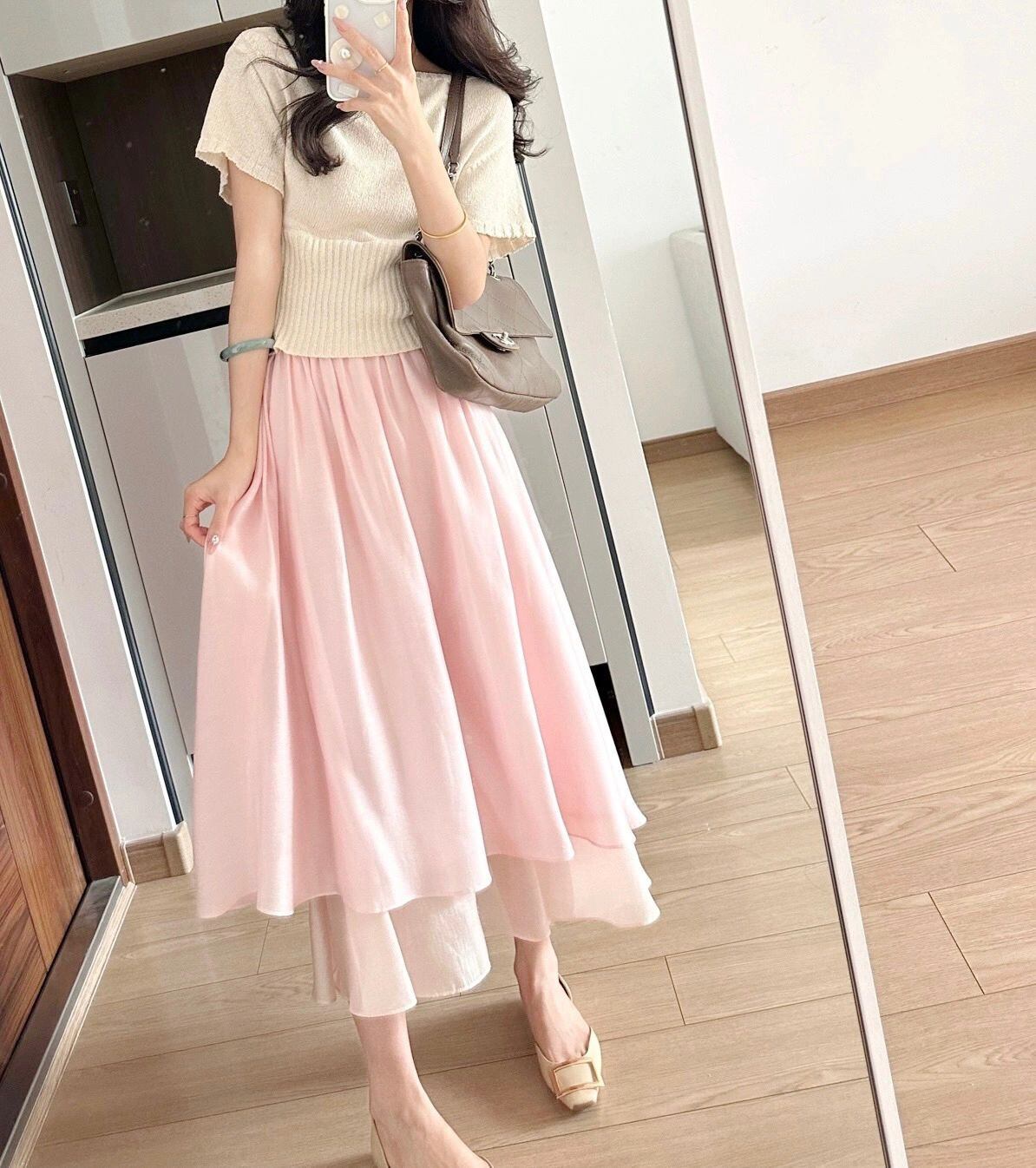 初回送料無料 夏ニット半袖トップスとスカート2点セット おしゃれ上着 人気スカート セットアップ