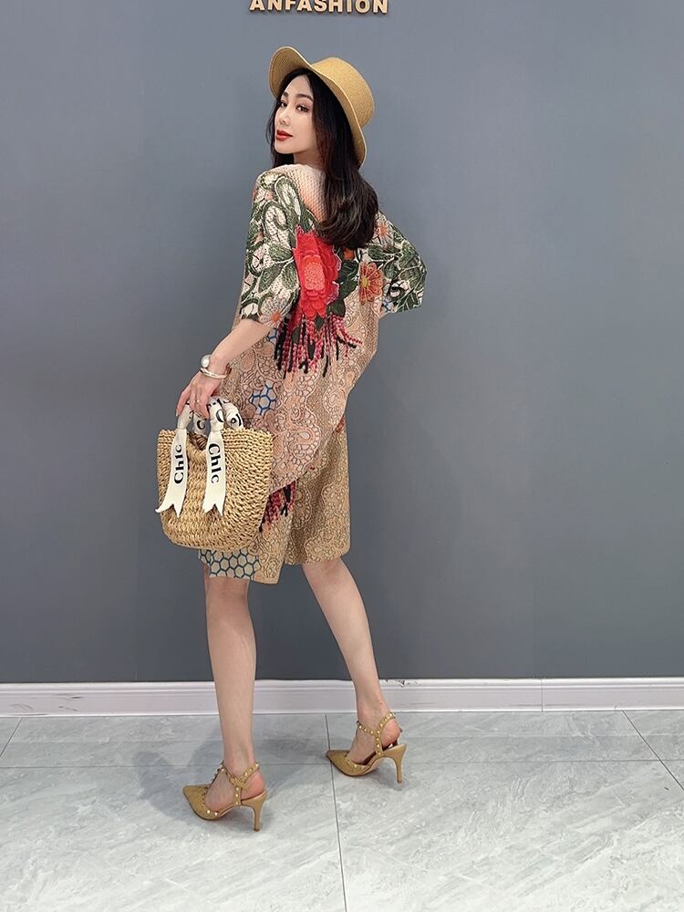 初回送料無料 ファション上着とゆったり5分ズボン2点セット プリントセットアップ 人気商品