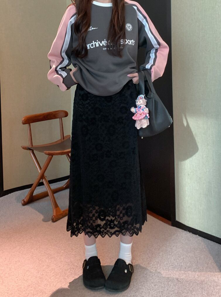 2023秋INS新作★気質 魅力的 可愛い レース飾り透かし彫り セミロングスカート