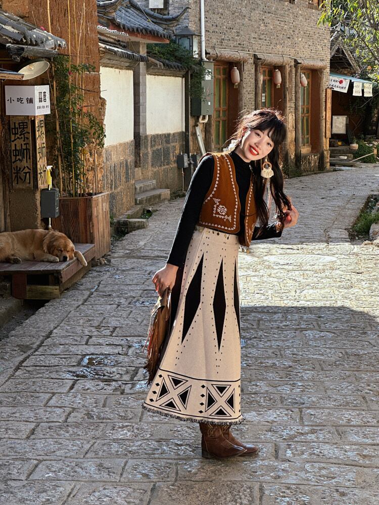 2023秋INS新作★ 設計感 気質 韓国系 エレガント系 セミロングスカート