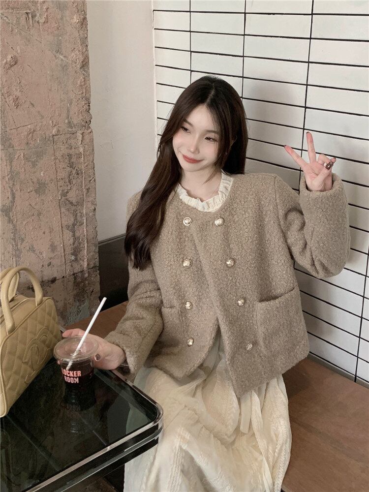 2023秋INS新作★ 韓国系 エレガント系 擬ラムウール コート 可愛い