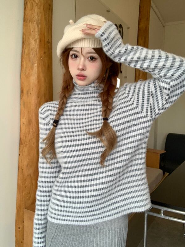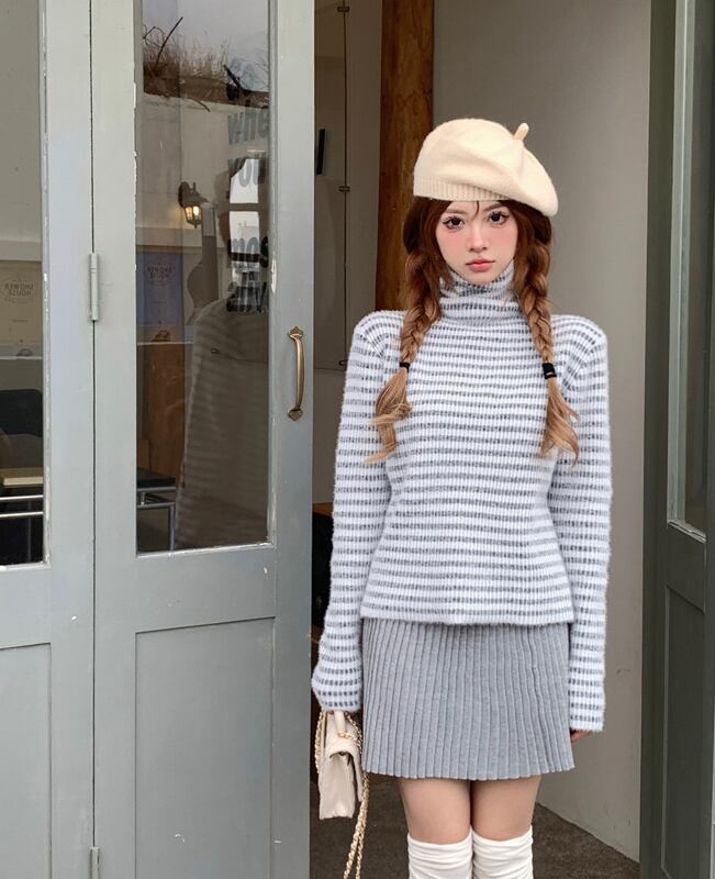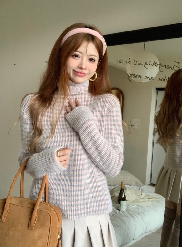 2023秋INS新作★可愛い ハイネック ニット トップス シャツ ブラウス
