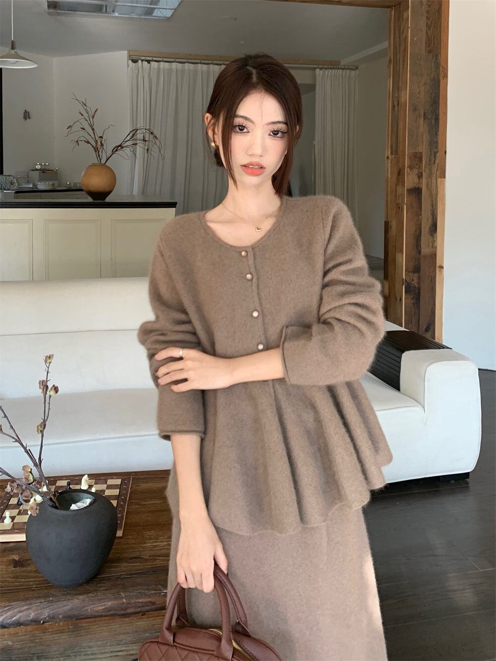 2023秋INS新作★ニット カーディガン+セミロングスカート セット