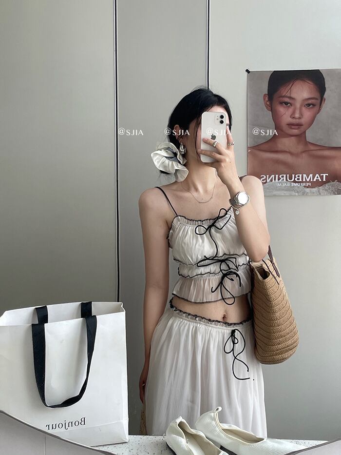2025年INS 春夏新作 おしゃれ カジュアル系 気質 個性的 キャミソール+ハーフスカート