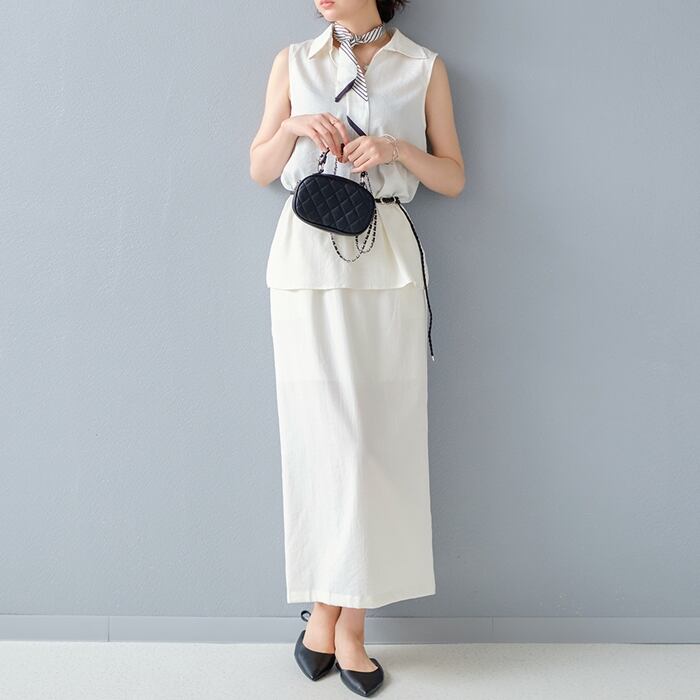 【2025新作商品♪】4点セットVネックノースリトップス×ロングスカート