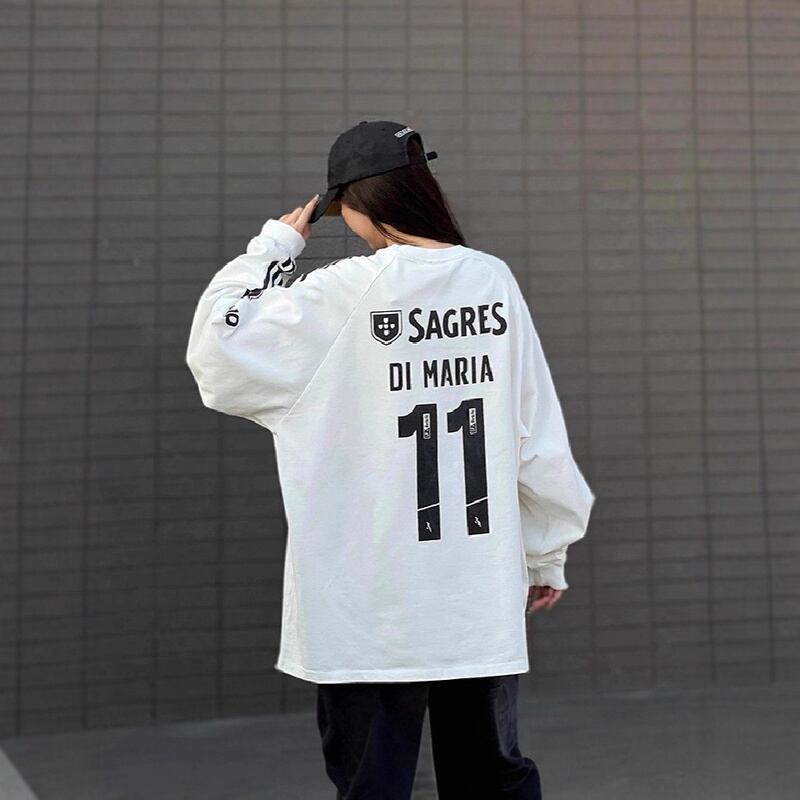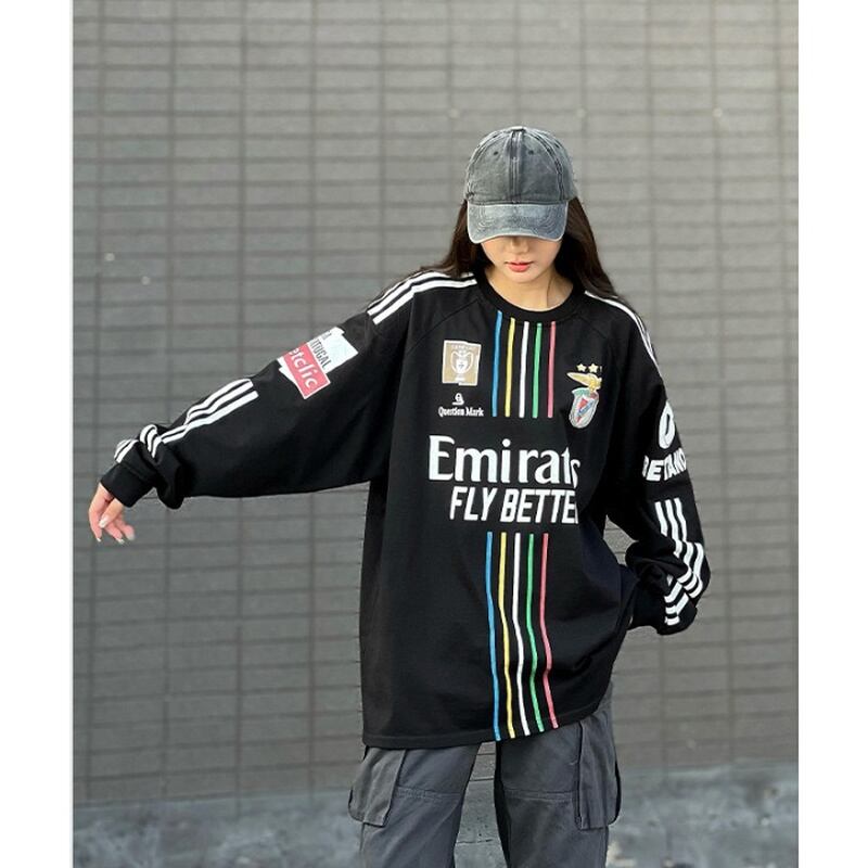 スウェット ゲームシャツ風 ナンバリング ストリート スポーティー ライン入り ルーズ