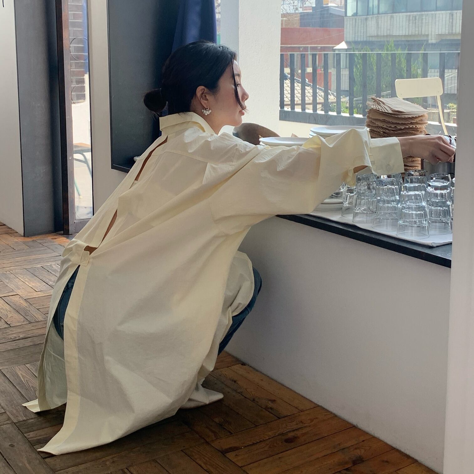 2026年INS 春新作 気質 おしゃれ バックスリット ルーズ ドロップショルダー トップス
