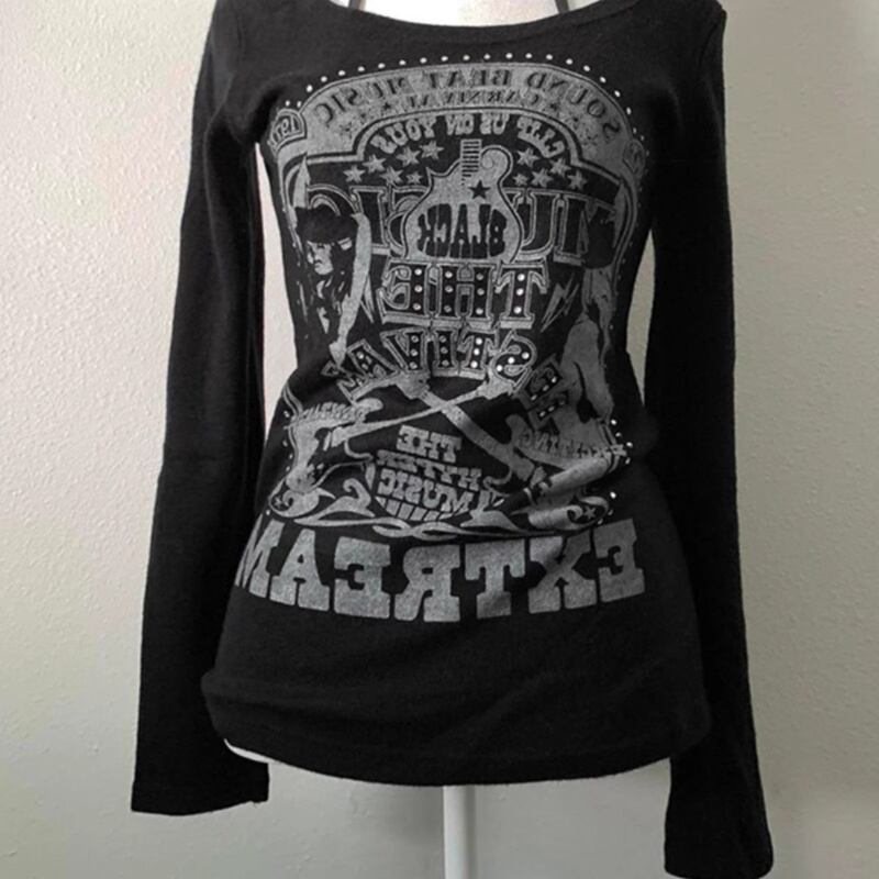Tシャツ 長袖 黒 キャラクター プリント レトロ ゆったり トップス レディース
