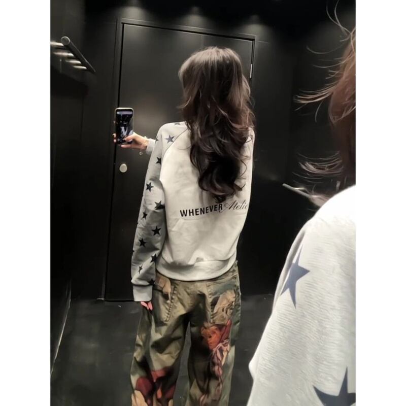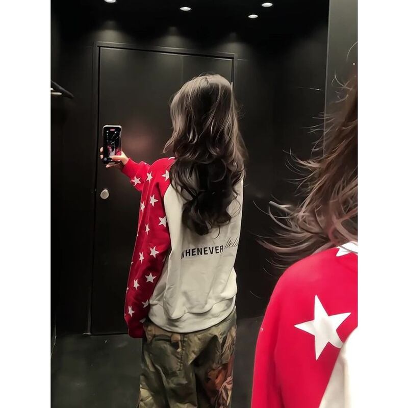 トレーナー 星柄 ロゴ バイカラー ゆったり 長袖 レディース